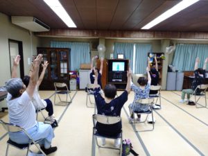 8月21日 百歳体操開催しました。お盆休み明けの百歳体操、相変わらず暑い日が続いていますが、体調管理に気をつけて楽しく体操に取り組んでいます。