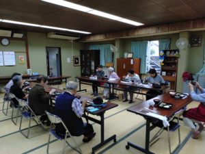 10月20日 高齢者食事サービスの食事会を開催しました。栄養満点、具だくさんの温かいお味噌汁とお茶と共に食事会を各々楽しみました。行楽シーズンでもあるのでウオーキングや旅行の予定のある方は不参加でしたが、参加された方は、美味しい食事とおしゃべりを楽しみ、有意義な時間を過ごしました。