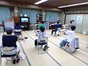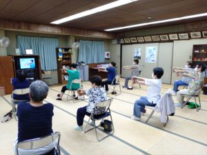 8月7日 百歳体操開催しました。朝から雨が降って湿度も気温も高めですが、熱中症や体調に気を付けて体操に取り組みました。